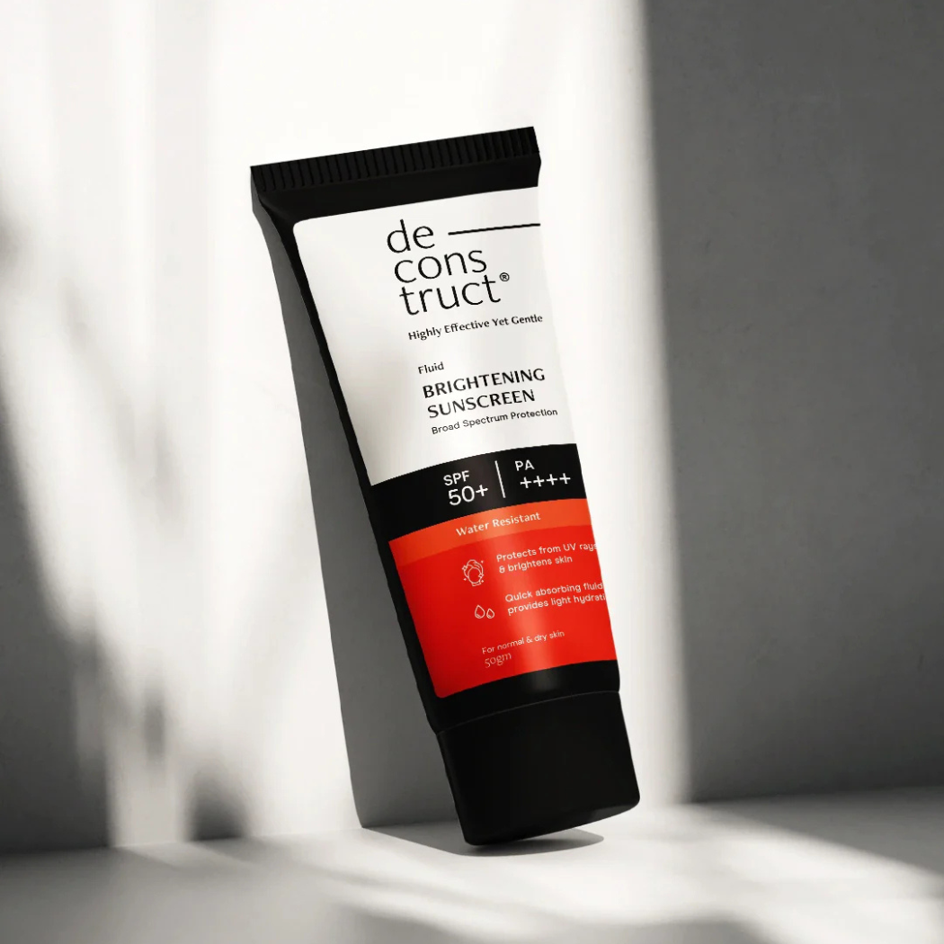 The Deconstruct Fluid Brightening Sunscreen is a multi-action sunscreen that not only protects your skin from harmful UV rays but also actively works to brighten, even out skin tone, and reduce dark spots.