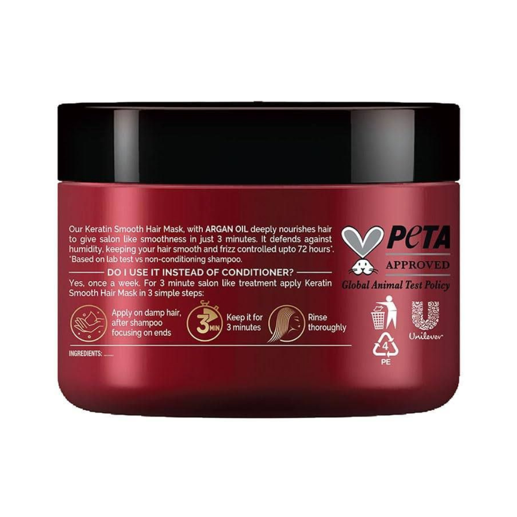 After shampooing, apply a generous amount of the Keratin Smooth Deep Smoothing Mask evenly from mid-length to ends. Leave on for 3–5 minutes, then rinse thoroughly. For best results, use once or twice a week as part of your Tresemme Keratin Smooth hair care routine.